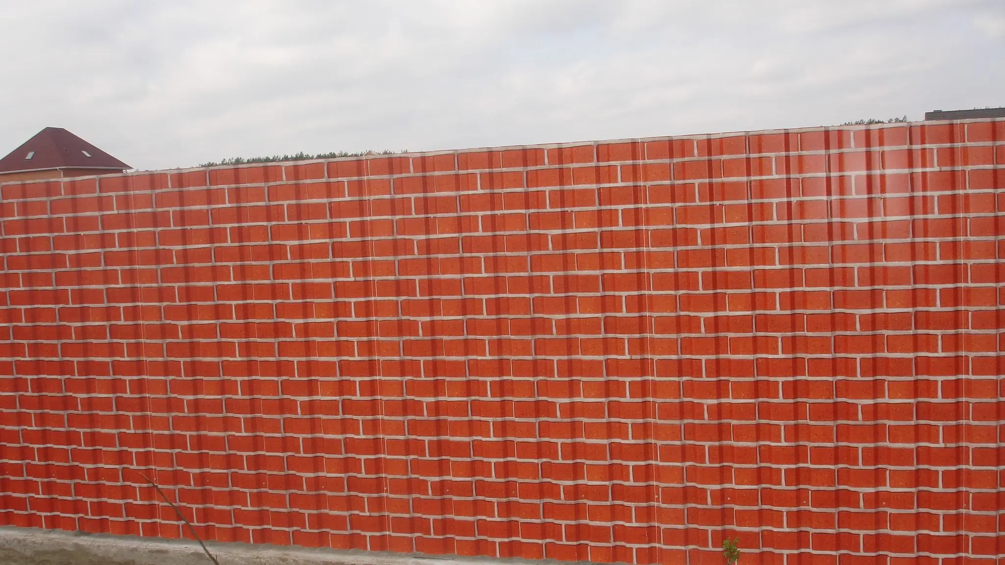 Профиль МП-20 имеет толщину 0,5 мм, что обеспечивает прочность и долговечность изделия. Он выполнен в стильном кирпичном дизайне, который придает зданию элегантный и современный вид.
