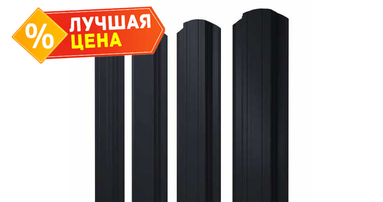 Штакетник Прямоугольный фигурный Grand Line 0,45 Полиэстер - double RAL9005 Черный | 2.0 м